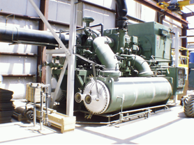 Atmospheric air is first filtered to remove airborne particles before it enters the Main Air Compressor. The compressor is the main energy user in an air separation plant. It is a significant determinant of electricity costs and costs per ton of the products oxygen, nitrogen or argon. The purpose of the compression step is to control the mass flow of air feeding the cryogenic distillation column at the condenser/reboiler operating pressure. When the air separation plant is in steady operation, it is the condenser/reboiler that pulls the air. The compressor then regulates the air flow and the balance act determines the operating pressure.