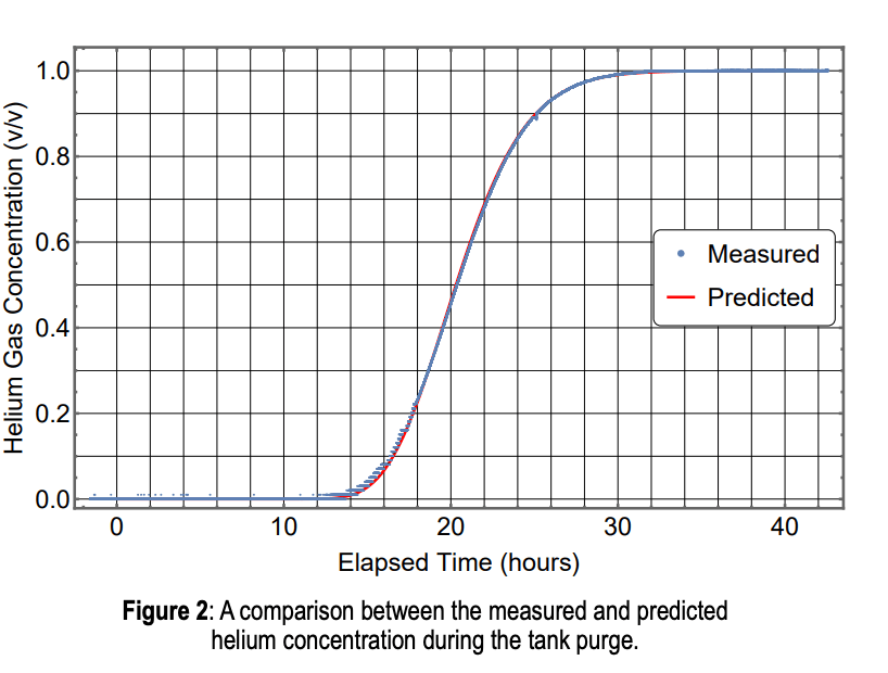 Upon realizing that the purge was diffusion limited and could be modelled, variations were studied, leading to three important conclusions. The flow rate should be increased until the onset of turbulent mixing; once started, the purge should not be stopped because this allows additional diffusion to occur; and trying to improve the purge by varying temperature or pressure has little benefit. Purging of the huge LH2 spheres is rare, but purging of flight tanks is common. In 2008, purge data from three Space Shuttle External Tanks was measured using a mass spectrometer and the NESC was asked to apply the diffusion model to this data. Doing this showed